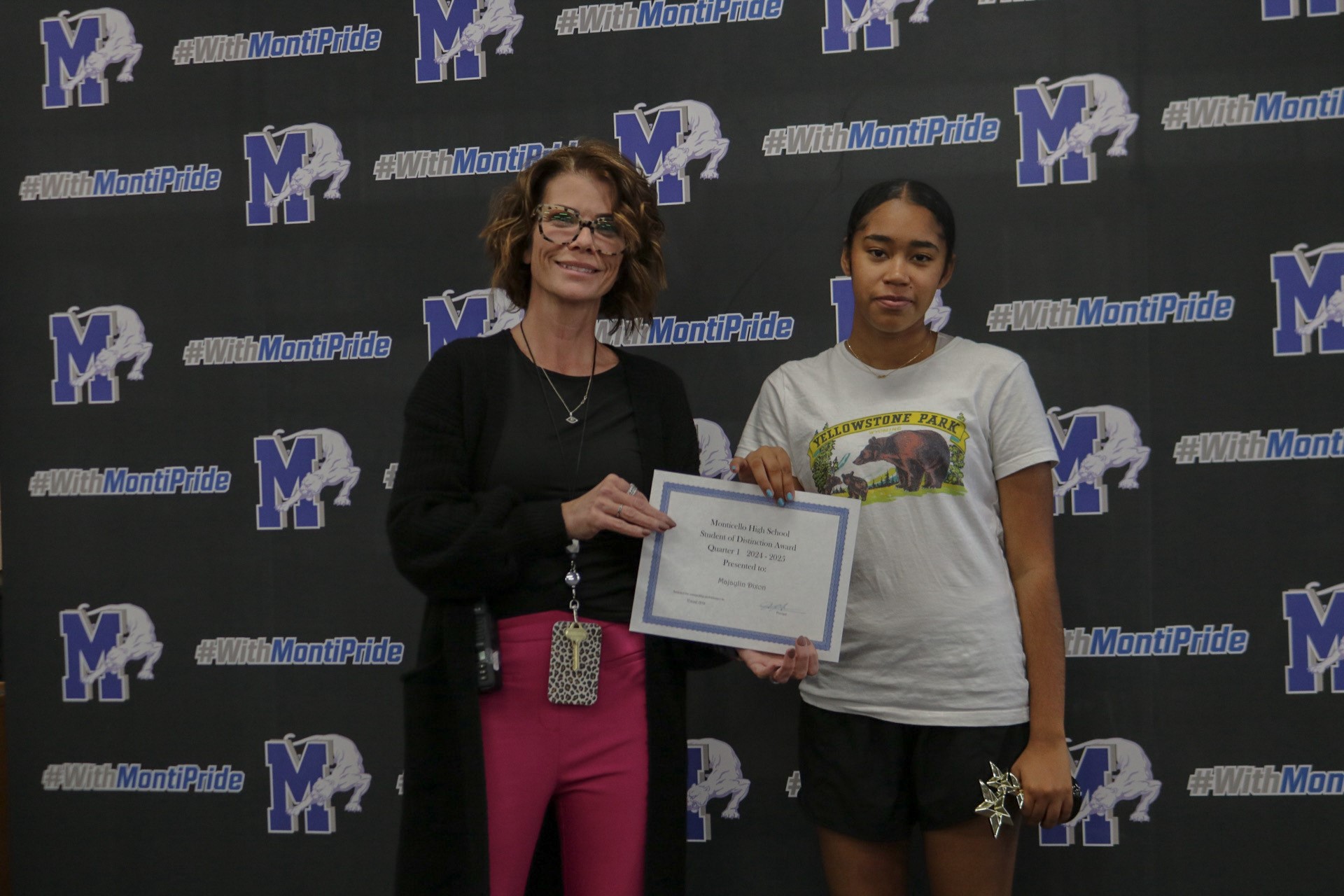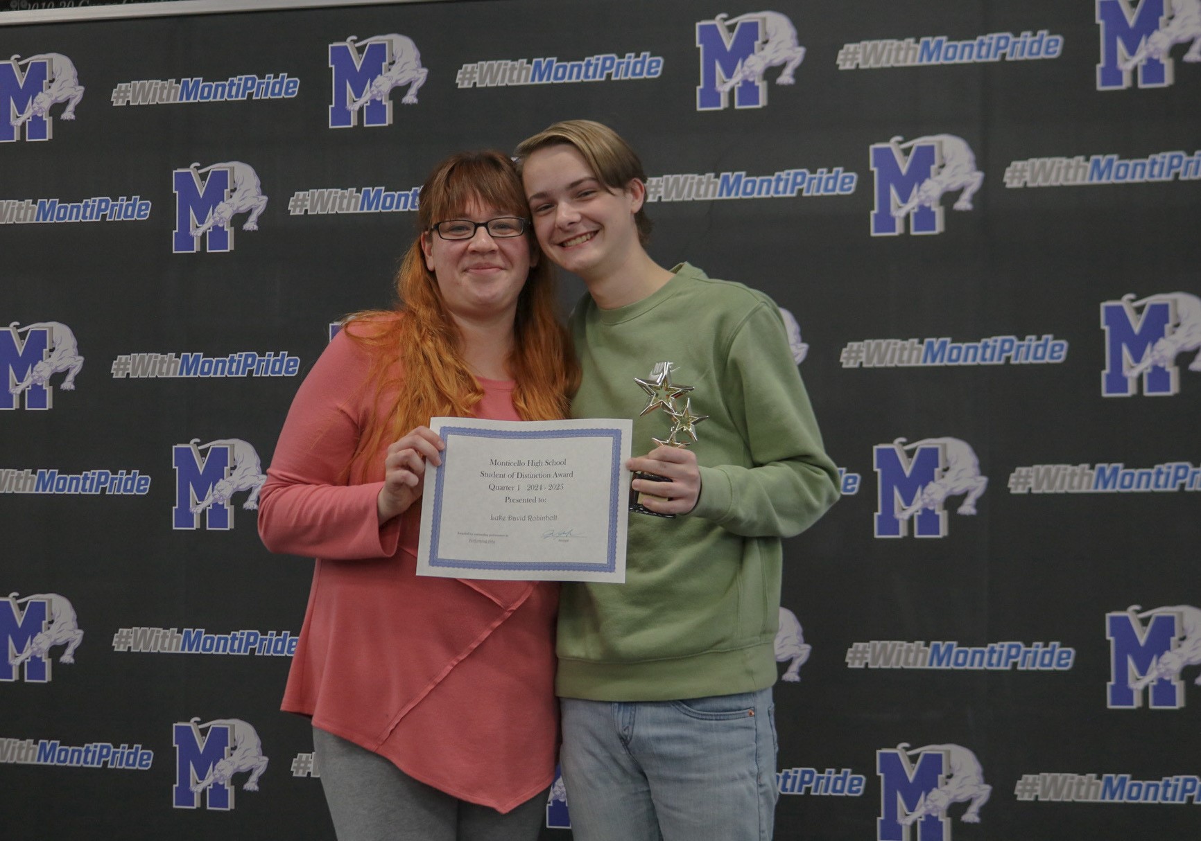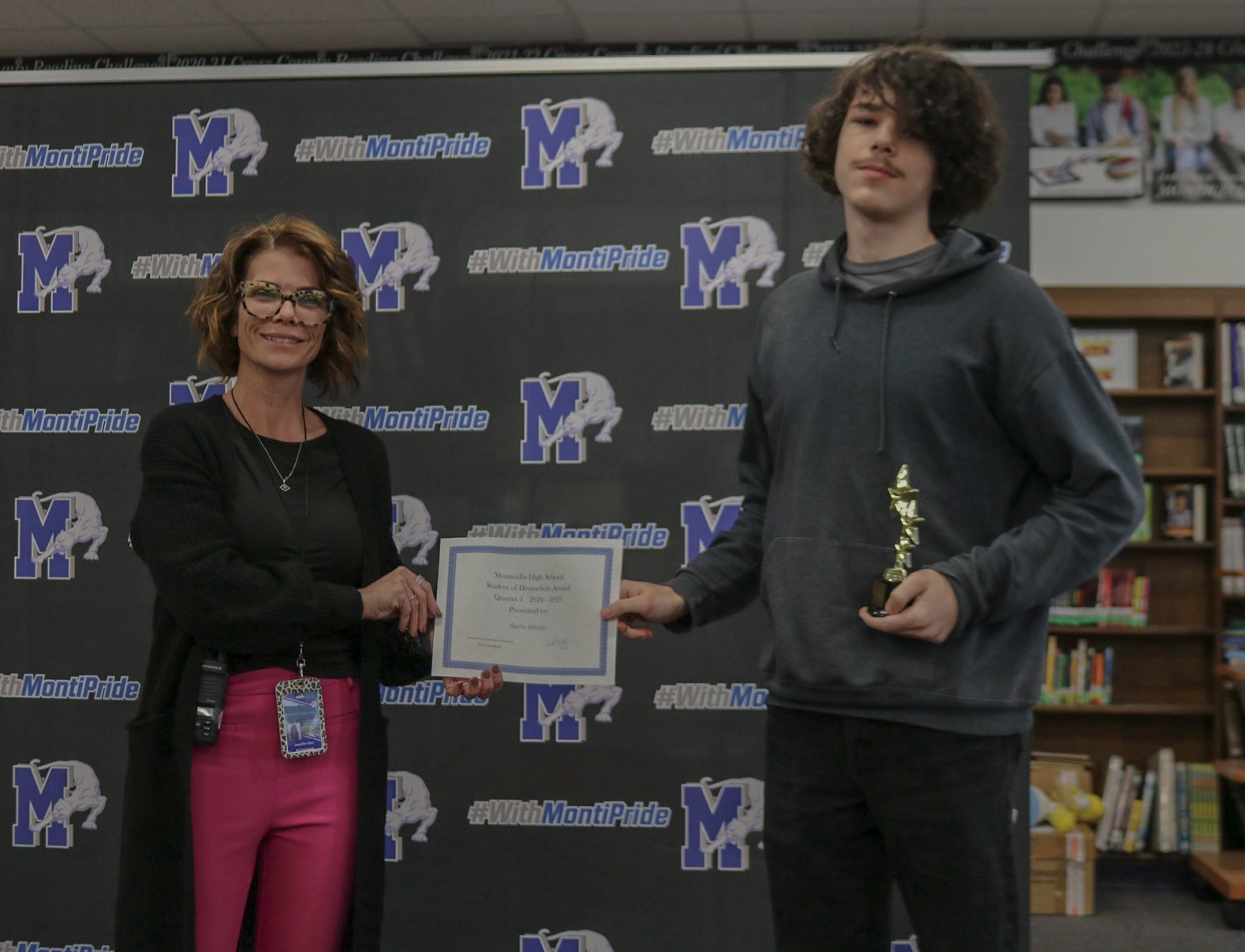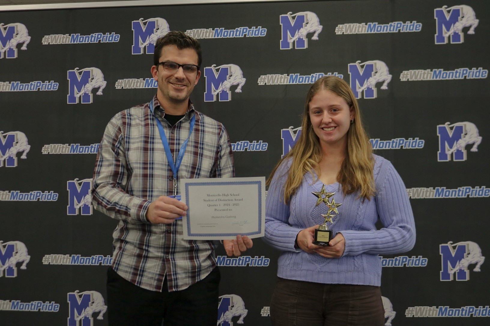 On November 14, 2024, in the high school library, nine students were recognized as Monticello High School Students of Distinction. The Monticello Student of Distinction Award was created to recognize and award students who have demonstrated behavior and/or achievement above and beyond expectations. These students have been nominated by their teachers and have been chosen among several nominees to receive this quarter’s award. Each student is celebrated today and will be celebrated throughout the school year. They are a shining example of excellence in our school community.
