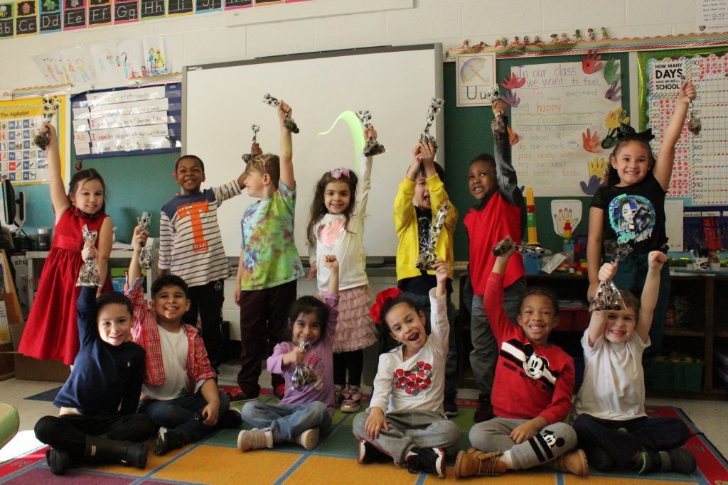 On Valentine’s Day, the kindergarten classes assembled in KLR’s multi-purpose room to recycle these crayons into gift bags for child patients and senior citizens at the Catskill Regional Medical Center. The students first rhythmically beat bags of the crayons into colored dust and then worked together to fill silicone molds with the remnants. After baking these molds, the broken crayons transformed into new crayons in fun shapes like letters and hearts. Then, students finished off the activity by creating cards for the recipients, before bagging the crayons into individual gift bags.
