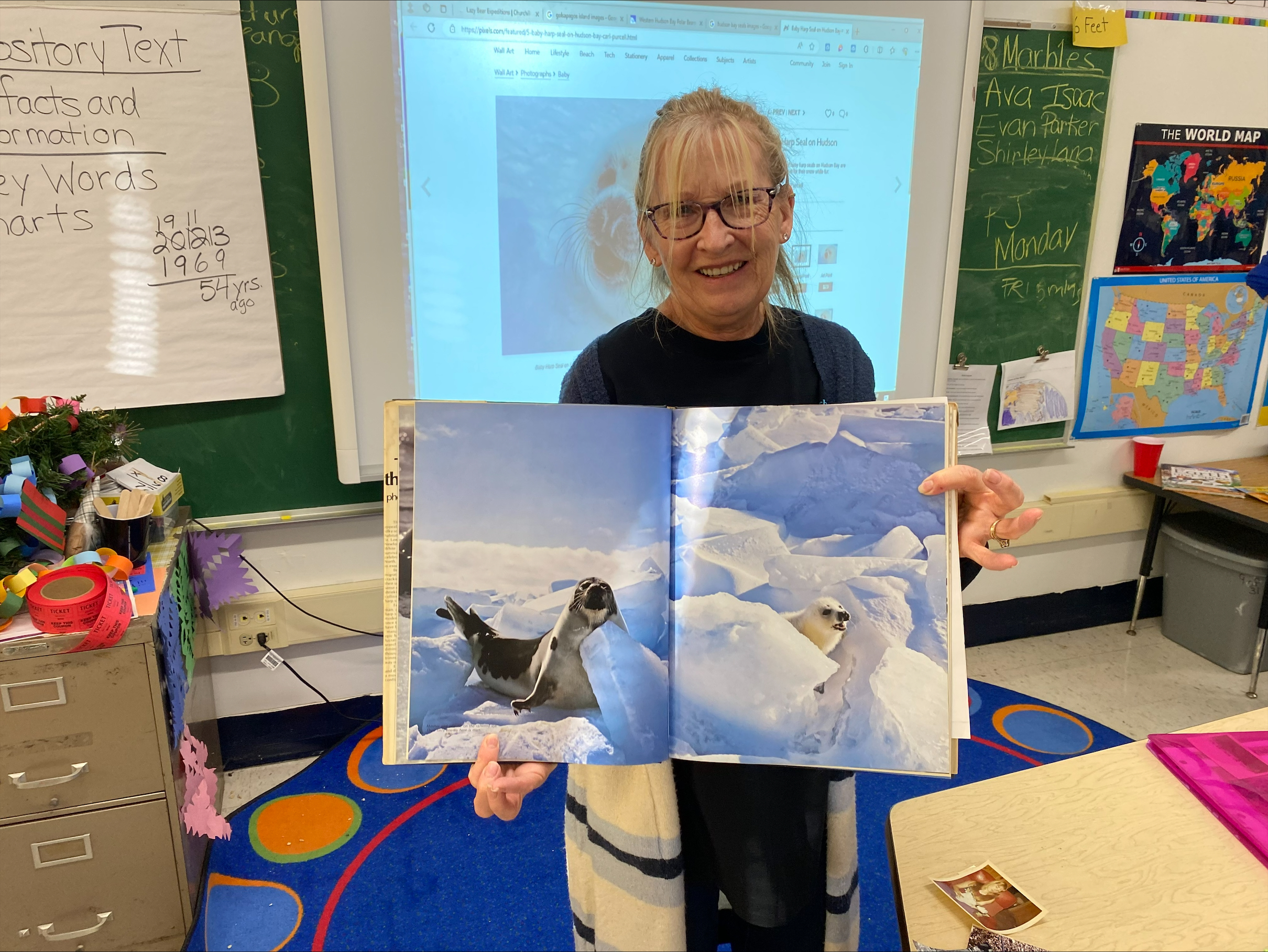 The students loved Ms. Masters’ stories about her parents’ adventures on their Alaska trip, her extraordinary childhood raising wild animals and seeing her incredible pictures. Our travels would not be possible, without the extraordinary help of Teacher Aides Mrs. Anna Tello and Mrs. Holland.