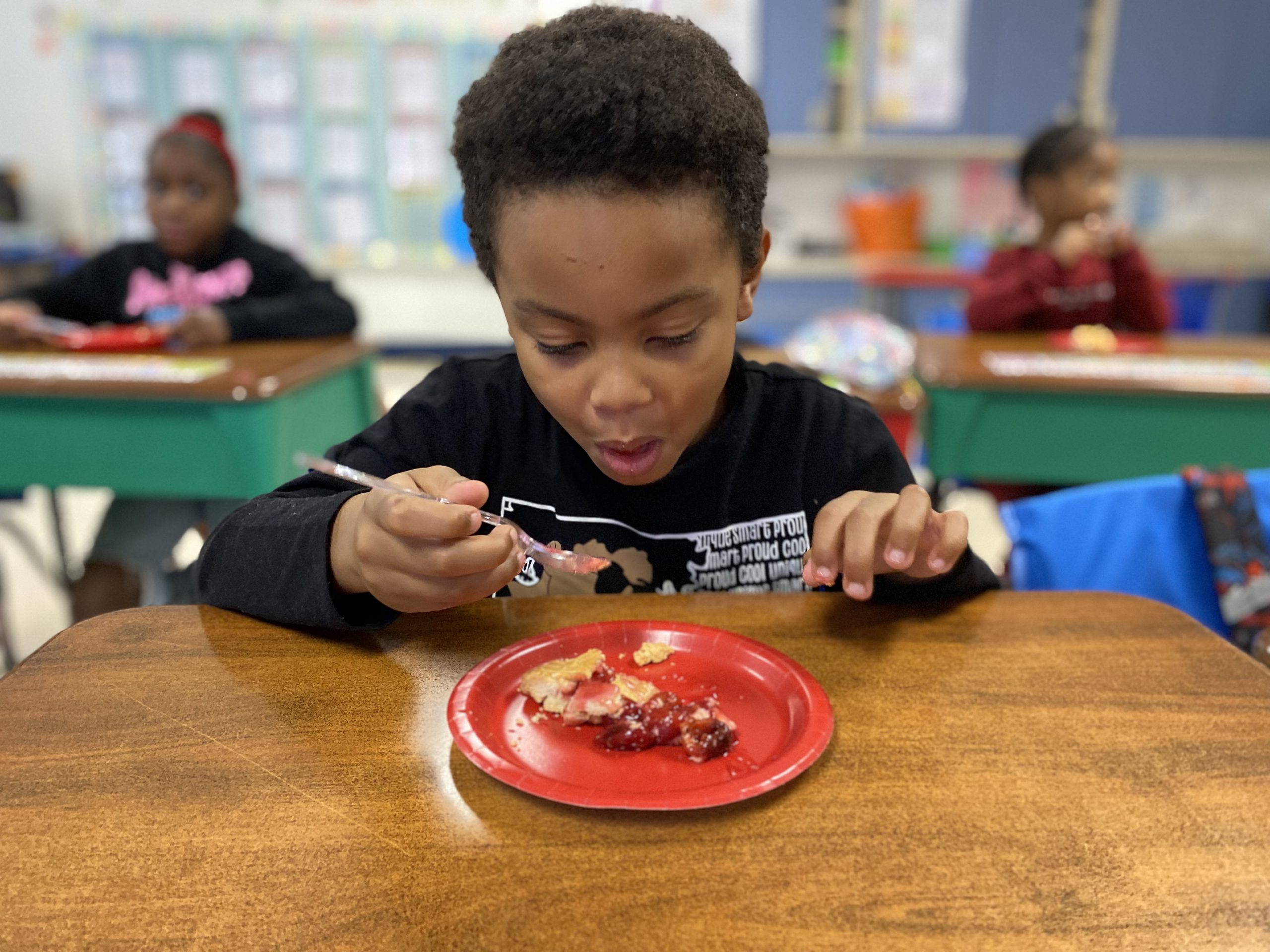 Next, second graders enjoyed a festive pie tasting! They traveled from room to room sampling delicious flavors: