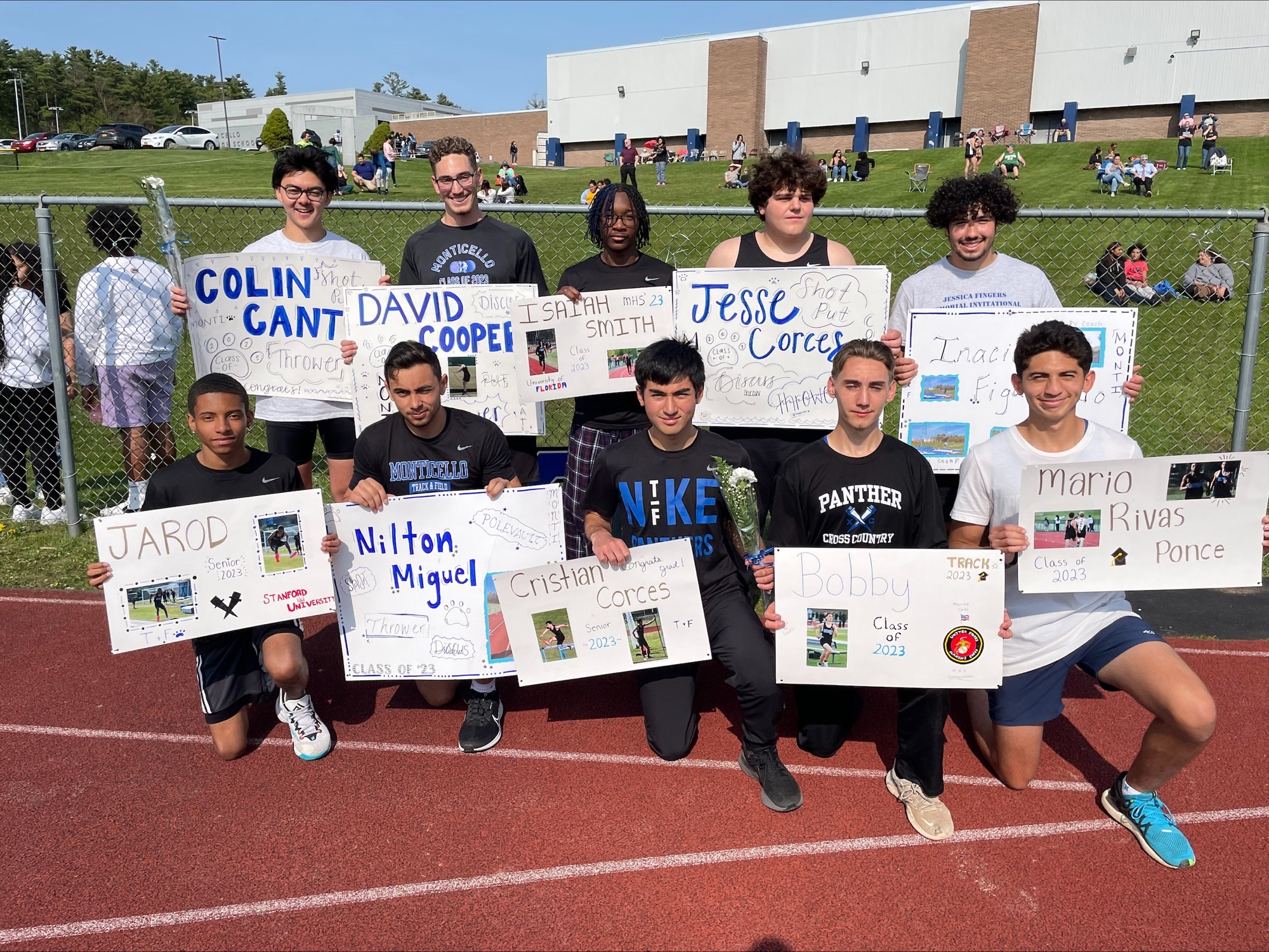 During the May 10 meet against Sullivan West, Coach Buddenhagen, Coach Seidl, Coach Sternkopf and Coach Buddenhagen honored seniors Meg Cruz, Taina DeJesus, Julia Kurthy, David Cooper, Jesse Corces, Colin Canto, Jarod Fennell, Inacio Henrique Figueiredo, Francis Giorgianni, Nilton Miguel, Jr., Robert Pape-Laucella, Mario Rivas-Ponce and Isaiah Smith.
